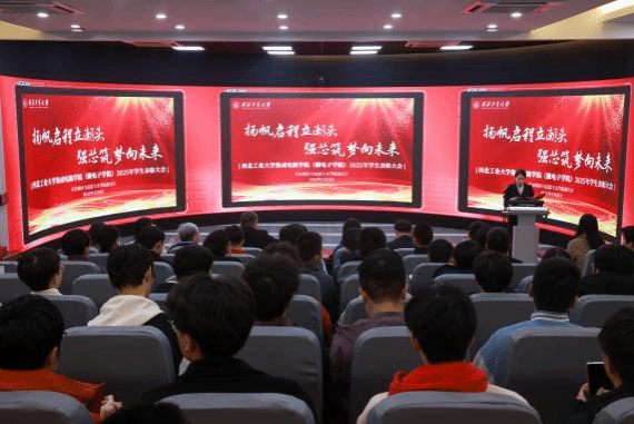 大会伊始,全体师生起立,奏唱中华人民共和国国歌。随后,杨妮花宣读了2025年学生表彰名单,并勉励同学们以先进为镜、向榜样看齐,既要仰望星空,也要脚踏实地,在追求卓越的实践中实现个人成长,主动将青春奋斗融入学校与学院的发展进程中,以实际行动践行时代使命。随后,马炳和、杨妮花、魏廷存分别为获奖学生集体和个人颁发荣誉证书。