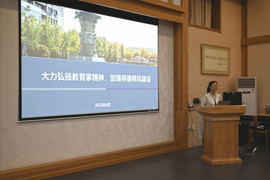 学院党委书记杨妮花以“大力弘扬教育家精神,加强师德师风建设”为题作专题报告。她指出,教师队伍建设是学院发展的重中之重,全体教师要深刻领会教育家精神的丰富内涵,严格遵守师德师风底线红线,将“躬耕教坛、强国有我”的使命担当,转化为扎根中国大地办教育、潜心立德树人、培育微电子领域栋梁之才的实际行动,为教育强国、科技强国建设贡献智慧力量。